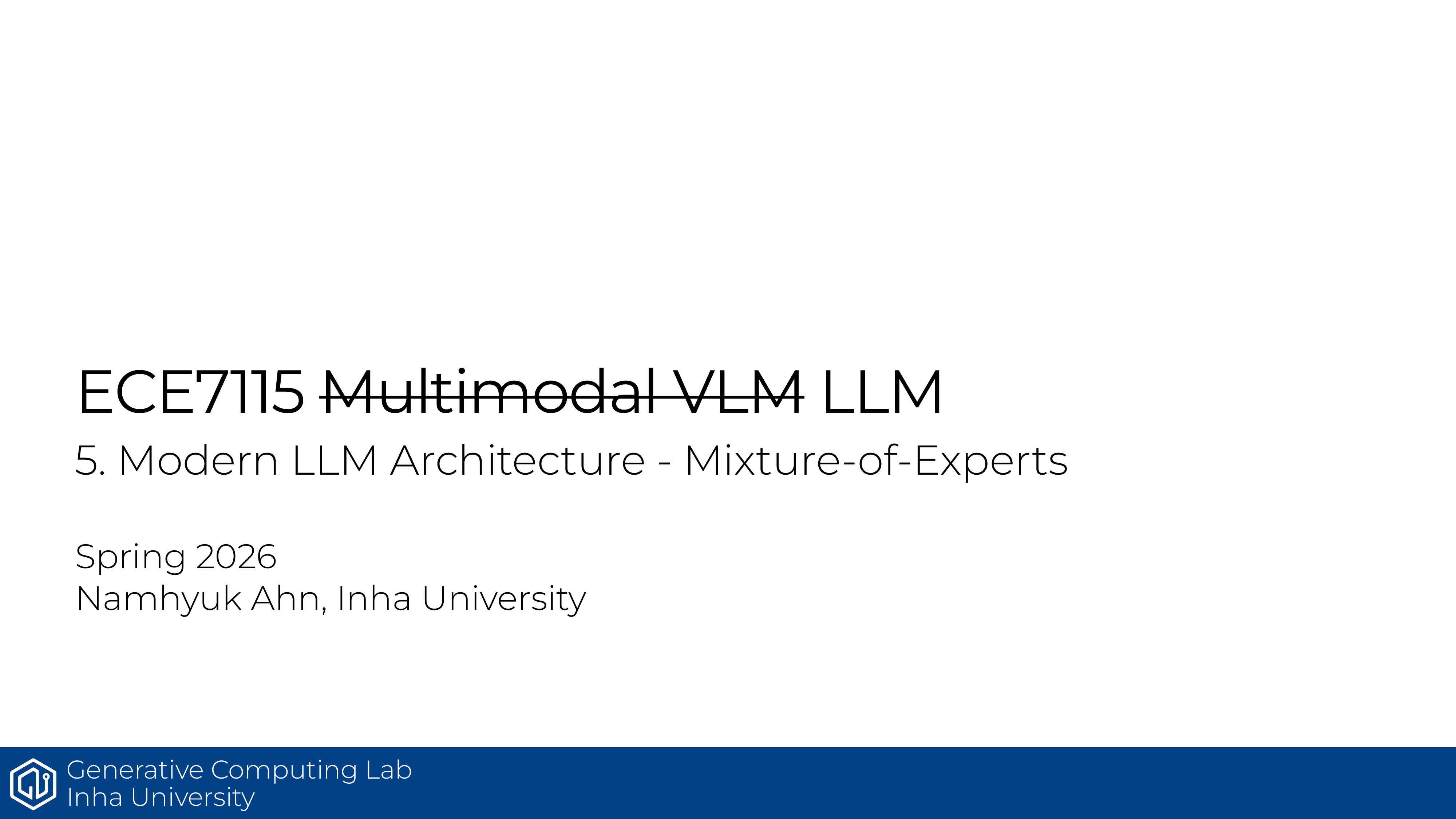 ECE7115 5강은 MoE가 왜 다시 뜨는지, 그리고 dense FFN과 뭐가 다른지에 초점을 맞춘다. 핵심은 더 많은 파라미터를 두되, 매 토큰에 모두 켜지지 않게 만드는 것이다.