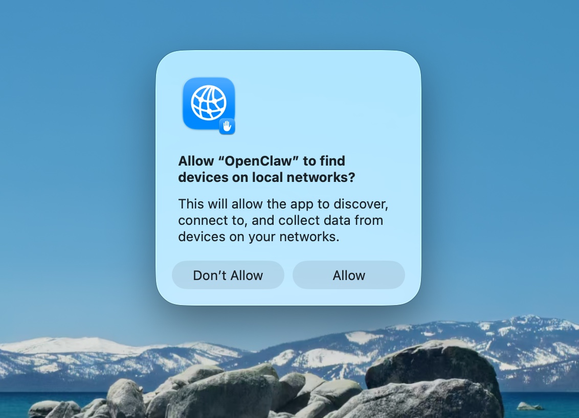 2. **로컬 네트워크 찾기 승인**